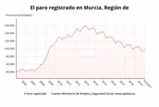 Gráfica que muestra la evolución del paro registrado en la Región de Murcia - EUROPA PRESS