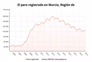 En términos relativos, el incremento del paro en el mes de enero en la Región fue del 3,86 por ciento respecto al mes de diciembre. El desempleo disminuyó en términos interanuales, de forma que en los últimos 12 meses bajó en Murcia en 4.137 personas, un 3,75 por ciento menos, frente a la caída del 5,49 por ciento nacional.