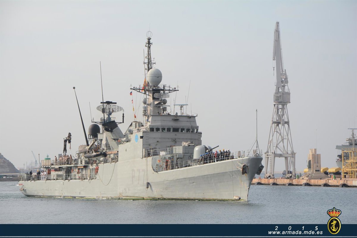 Durante el despliegue, el buque de la Armada ha visitado los puertos de Souda, Djibouti, Mascate (Omán), Salalah (Omán), Dubái (EAU), Port Victoria (Seychelles), Diego Suarez (Madagascar) y Catania.