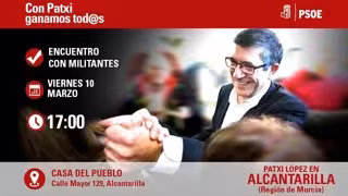 Según han confirmado a Europa Press fuentes socialistas, Patxi López mantendrá un desayuno con militantes el viernes, 10 de marzo, a las 11.00 horas, en Cieza, en la sede del PSOE. Además, se reunirá con militantes, a las 17.00 horas, en la Casa del Pueblo en Alcantarilla.