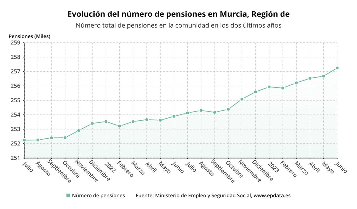 Evolución del número de pensiones en la Región de Murcia - EP DATA