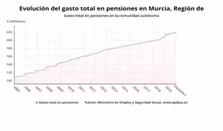 Evolución del gasto total en pensiones en Murcia - EUROPA PRESS
