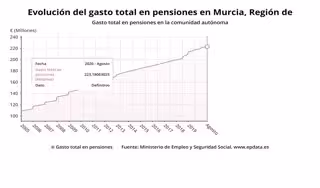 Gráfica que muestra la evolución del gasto total en pensiones en la Región - EUROPA PRESS