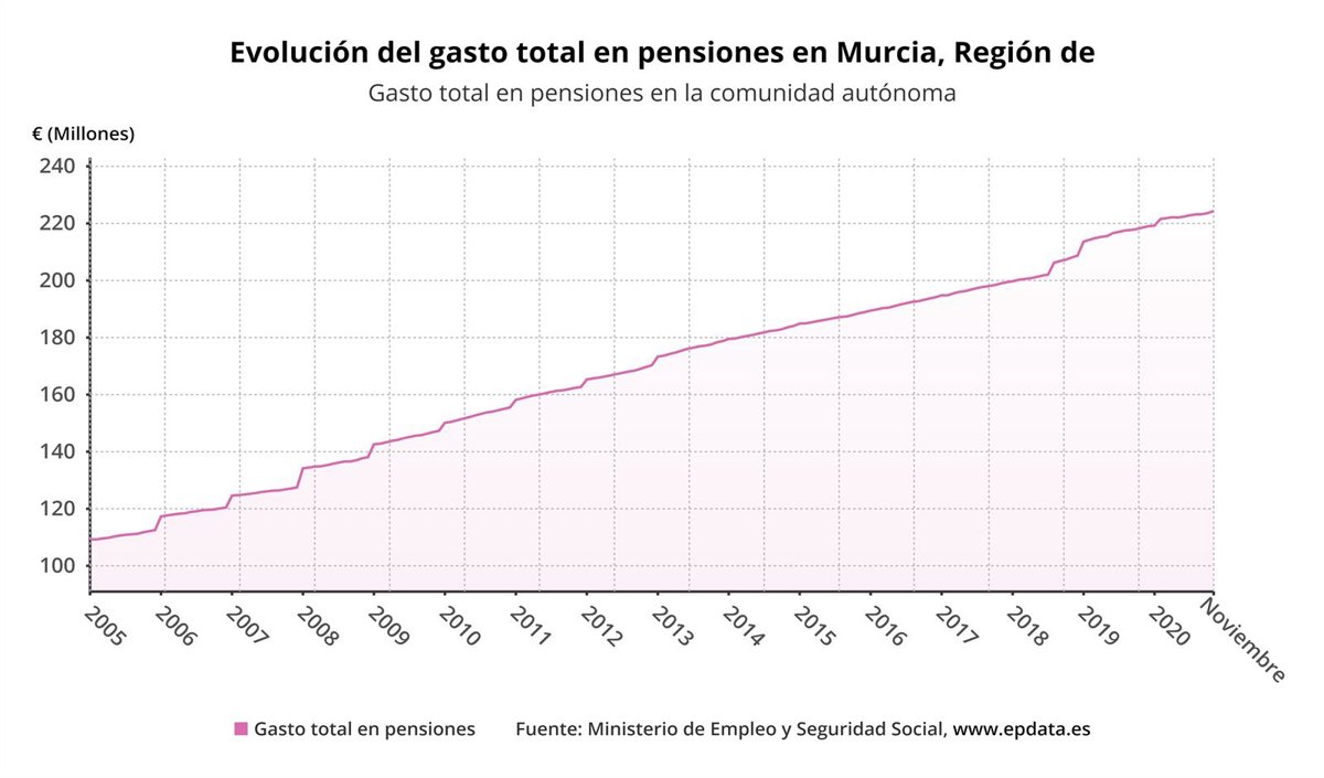 Evolución del gasto en pensiones en la Región de Murcia - EUROPA PRESS