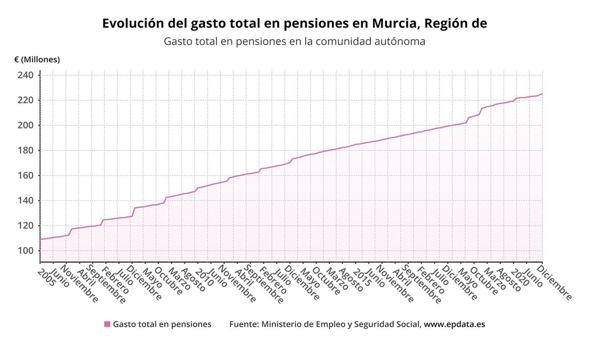 Evolución del gasto total en pensiones en la Región de Murcia - EUROPA PRESS