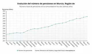 Gráfica que muestra la evolución del número de pensiones en la Región de Murcia - EP DATA