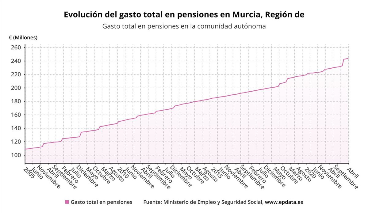 Evolución del gasto en pensiones en la Región de Murcia - EP DATA
