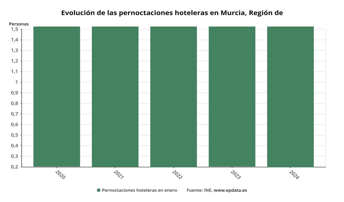Plantilla EpData - Las pernoctaciones hoteleras en Murcia ascienden un 6,75% en eneroEuropa Press - EpData