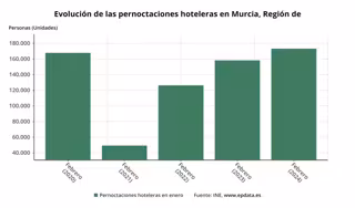Evolución de las pernoctaciones hoteleras en la Región de Murcia - EPDATA