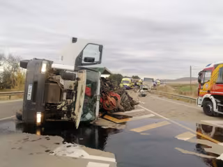 Una mujer ha resultado fallecida y 13 personas heridas al volcar un camión sobre un autobús que transportaba trabajadores en la carretera que une Lorca (Murcia) y Pulpí (Almería), en el puente de salida de Las Escarihuelas, en el término municipal de Lorca.