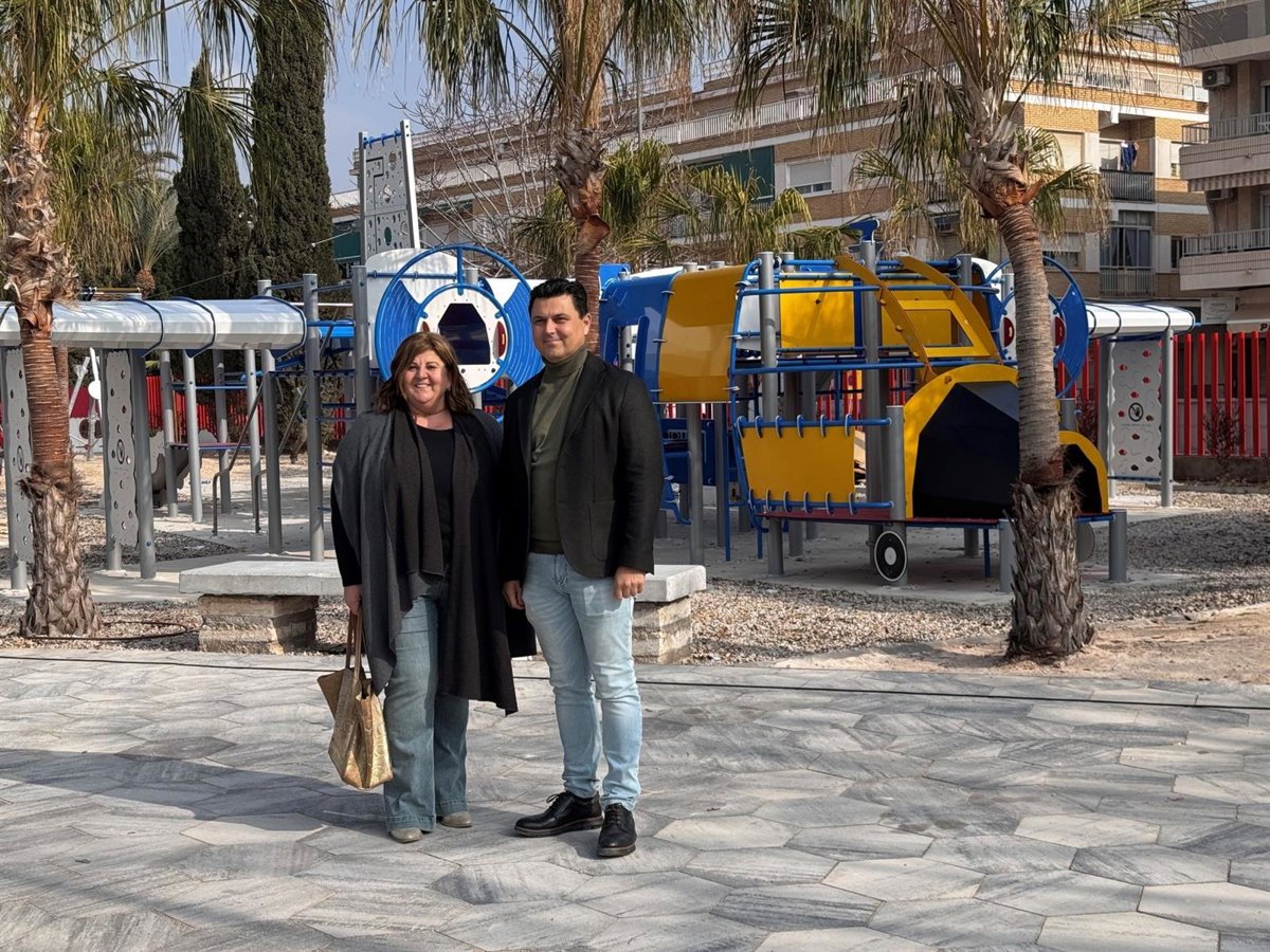 El alcalde José Miguel Luengo y la concejala de Servicios Comunitarios, Parques y Jardines, María Dolores Ruiz, durante su visita al parque - AYUNTAMIENTO DE SAN JAVIER