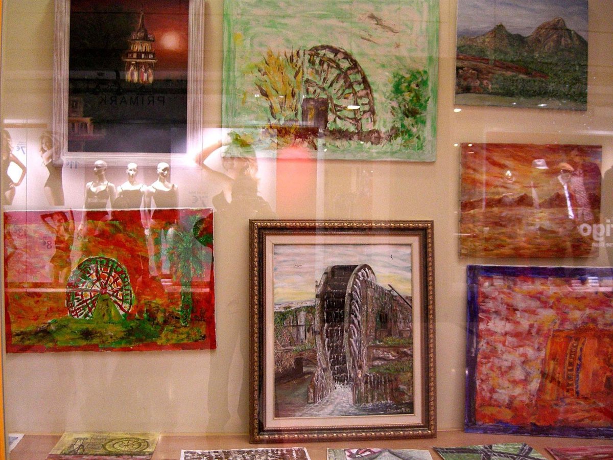 El pintor de Abarán, afincado en Cieza, Guzmán Valero, presenta en las escaparates del Centro Comercial Nueva Condomina una colección de cuadros patrocinada por el Gremio Regional de Artesanías Varias y la gerencia de este centro de comercial y de ocio, que estará expuesta hasta el próximo 31 de diciembre.