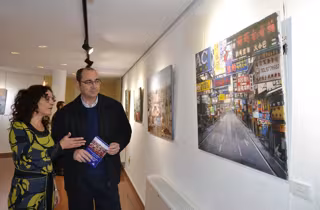 La muestra recoge casi una treintena de cuadros, principalmente acrílicos y óleos, donde destaca el paisaje urbano, uno de los fuertes de esta artista a la que no le da miedo enfrentarse a cualquier tipo de pintura, como retratos, bodegón o anatomía.