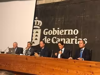 En la apertura del III Foro Internacional de Turismo organizado por Tribuna Fórum Europa, el consejero Javier Celdrán ha estado acompañado del consejero de Turismo de Canarias, Isaac Castellano; el viceconsejero de Turismo de Canarias, Cristóbal de la Rosa; el consejero de Turismo del Cabildo de Tenerife, Alberto Bernabé; el director regional de BBVA, José Manuel Martín; y presidente de Tribuna Europa Fórum, Manuel Delgado.