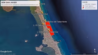 Infografía de la zona de la playa cerrada al baño, en La Manga - AYUNTAMIENTO DE SAN JAVIER EN TWITTER