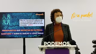 La diputada morada ha exigido "presupuestos ya", porque "de ello depende que tengamos refuerzos sanitarios ya, centros de salud abiertos ya, más profesores en nuestras aulas ya, o los equipos de vacunación prometidos ya". Marína ha aseverado que, a día de hoy, "la Región de Murcia se enfrenta a ella con una mano atada a la espalda, sin presupuestos y, por lo tanto, sin los refuerzos e inversiones que nuestros profesionales sanitarios piden a gritos desde hace meses".