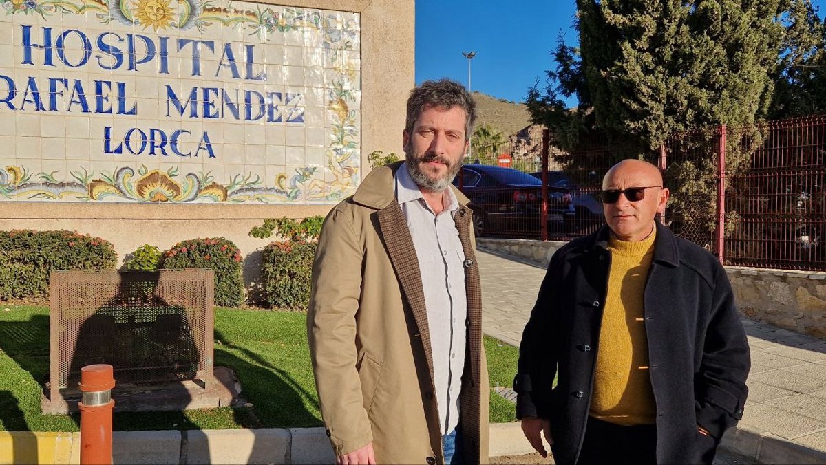 El diputado regional de Podemos-Izquierda Unida y ALianza Verde (Podemos-IU-AV), Víctor Egío, y el concejal de la coalición en Lorca, Pedro Sosa, han denunciado públicamente este jueves, a las puertas del hospital Rafael Méndez de Lorca, el "desbordamiento que sufre la sanidad regional".