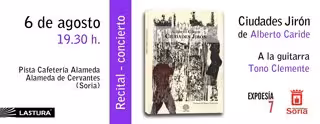 Caride estará firmando durante la mañana y la tarde del próximo martes ejemplares de su segundo poemario, 'Ciudades jirón', en la caseta de la editorial Lastura. Asimismo, por la tarde, a partir de las 19.30 horas, realizará un recital presentación junto al guitarrista Tono Clemente, en el Paseo de la Alameda de Cervantes.