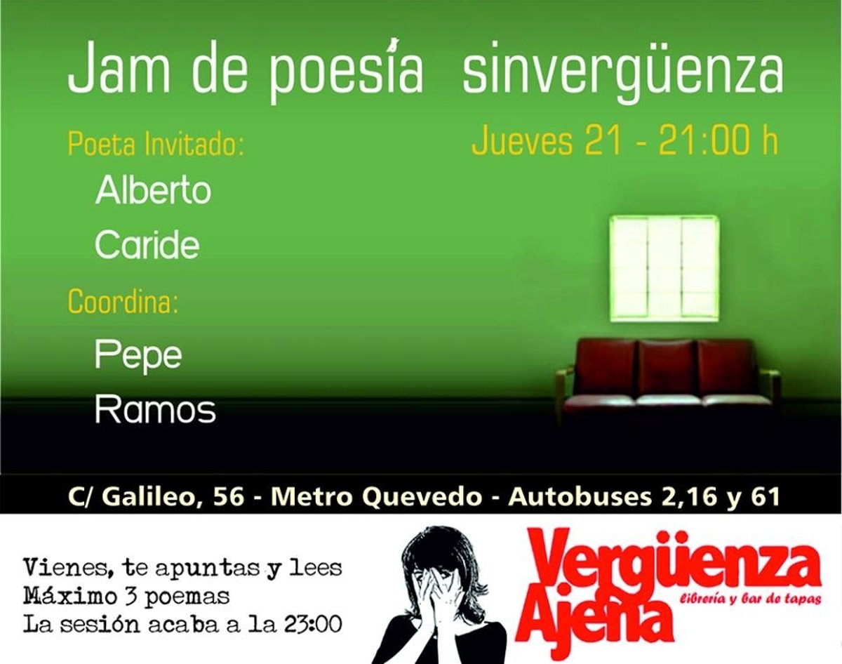 El poeta murciano Alberto Caride acude este jueves, a las 21.00 horas, como invitado a la 'jam session' que organiza el bar-librería 'Vergüenza Ajena' de Madrid, según han informado a Europa Press fuentes de la organización del evento.