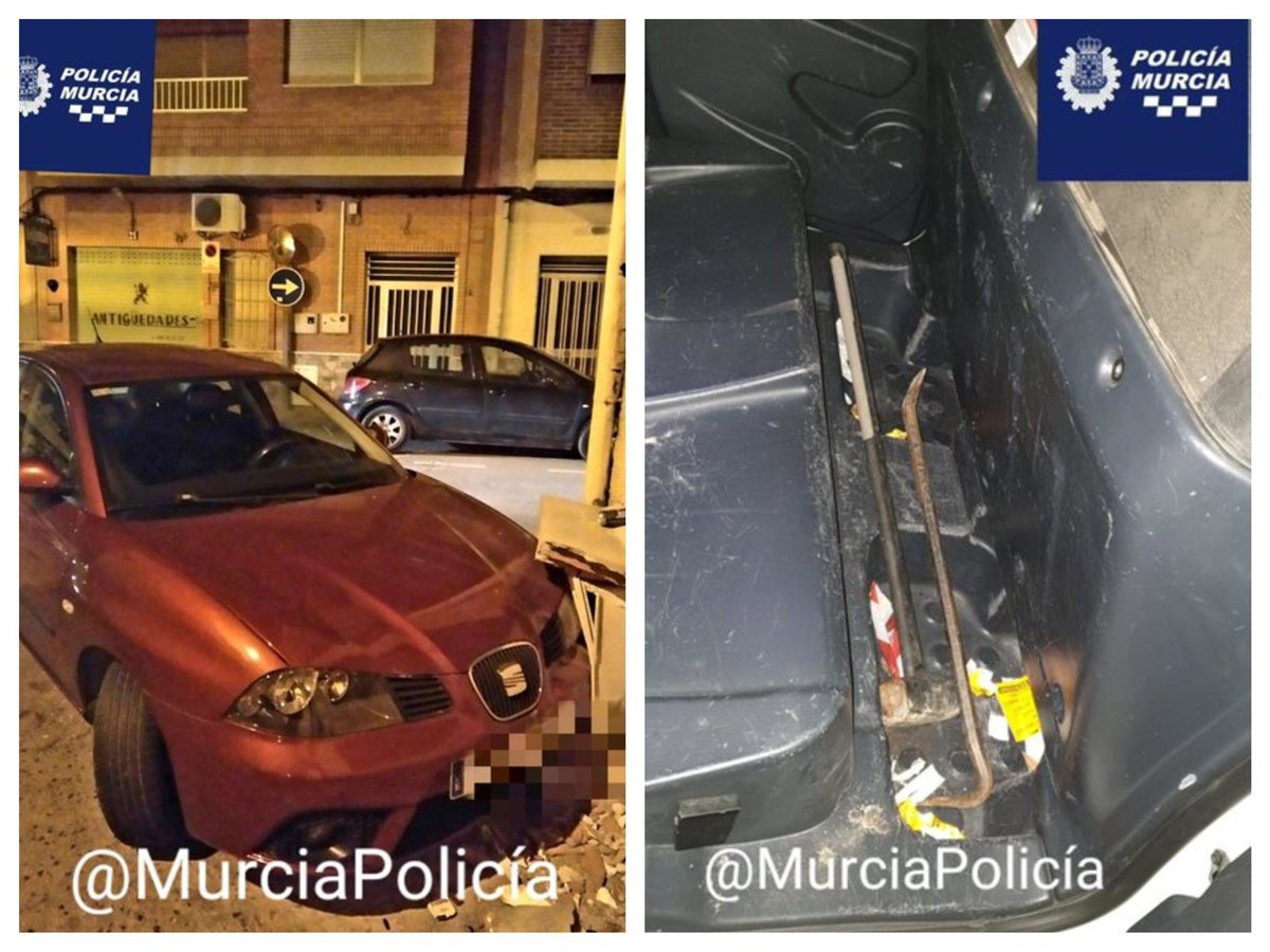 Imagen del turismo interceptado y la herramienta encontrada en su interior - TWITTER DE POLICÍA LOCAL DE MURCIA
