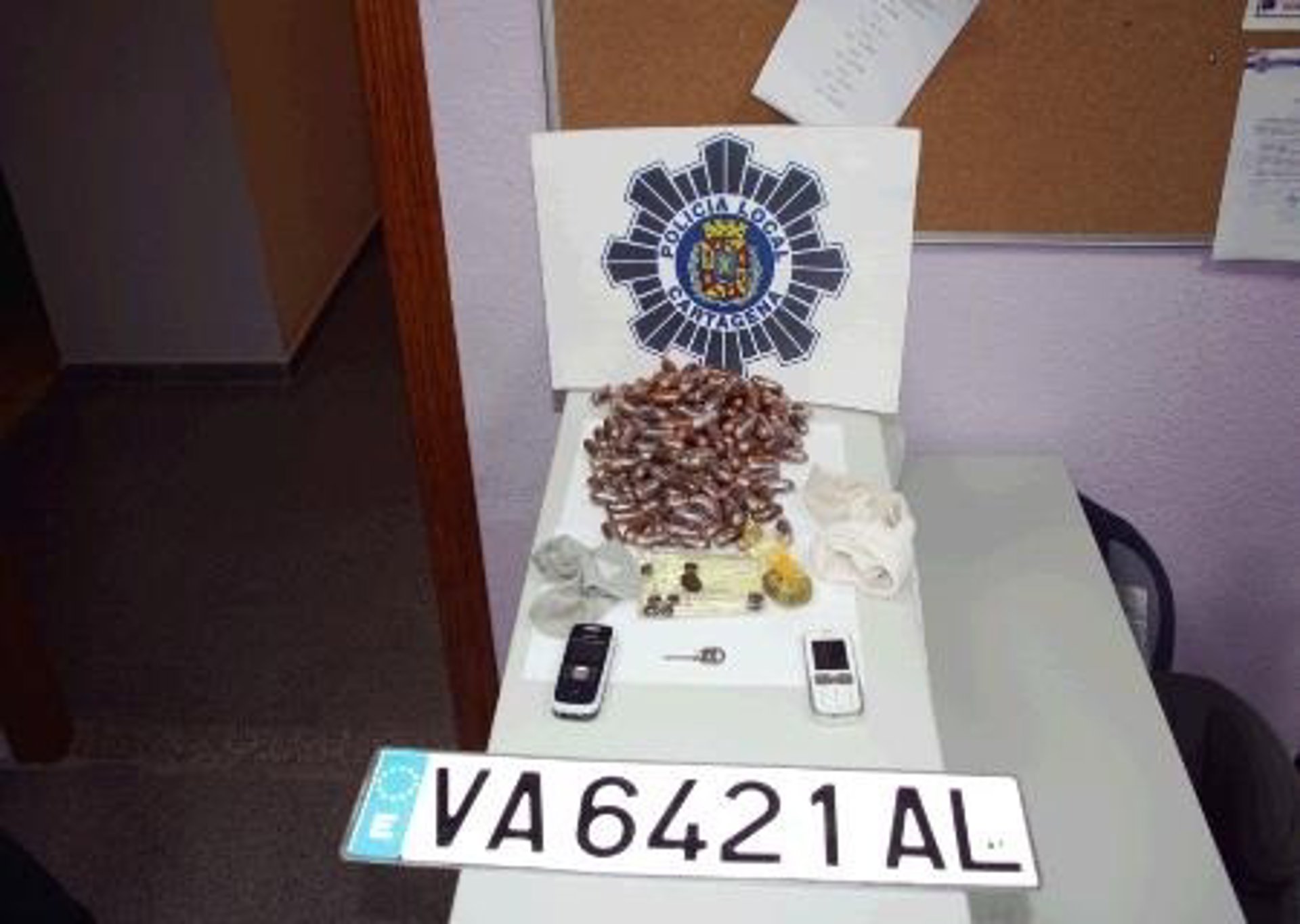 Agentes de la Policía Local detuvieron el pasado viernes en Pozo Estrecho a cuatro individuos por un delito contra la salud, tras incautarles 201 bellotas de resina de hachís, dos teléfonos móviles, una bolsa de 10 gramos de marihuana y otra con pequeñas cantidades de hachís.