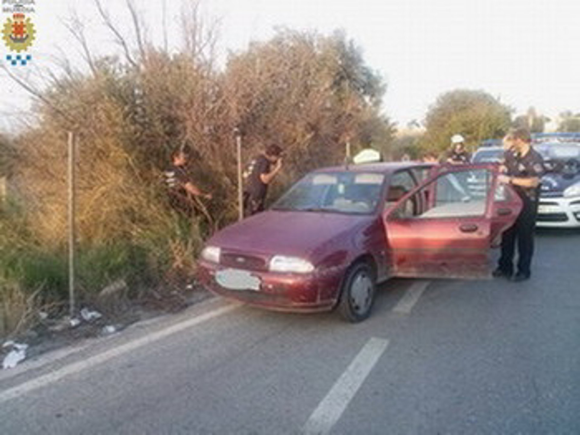 Fue inmovilizado, con la intervención de varias patrullas de policía, antes de llegar a esa última pedanía. Lo ocupaban cuatro individuos. Uno de ellos intentó ocultar un pequeño objeto al bajarse del coche; lo dejó caer distraídamente bajo el vehículo.