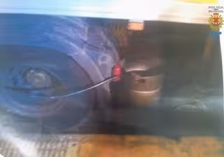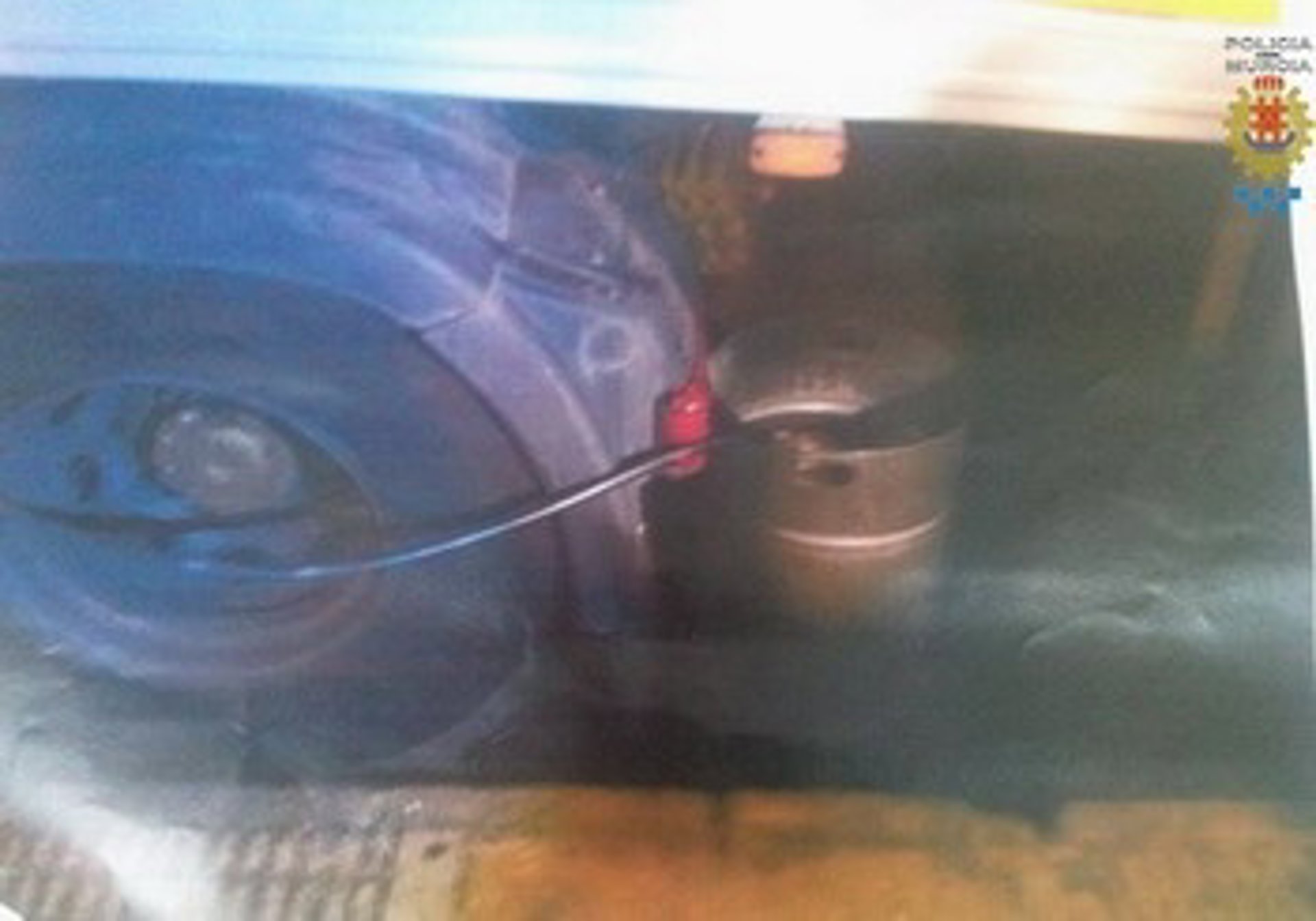 Y es que una patrulla de la Unidad de Seguridad Ciudadana había sorprendido a un individuo agazapado bajo el camión y un depósito metálico situado junto al tanque de combustible con una manguera conectando ambos y sacando el líquido de uno a otro. Ya se habían trasvasado unos 70 litros de diésel.