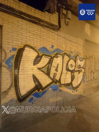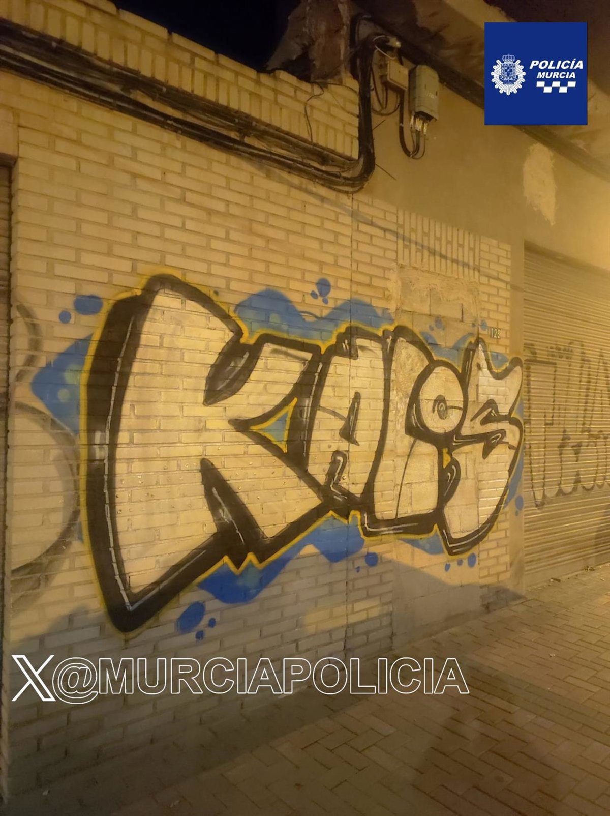 La Policía Local de Murcia ha identificado esta noche a dos jóvenes como presuntos autores de un grafiti en un muro en el barrio de Espinardo.