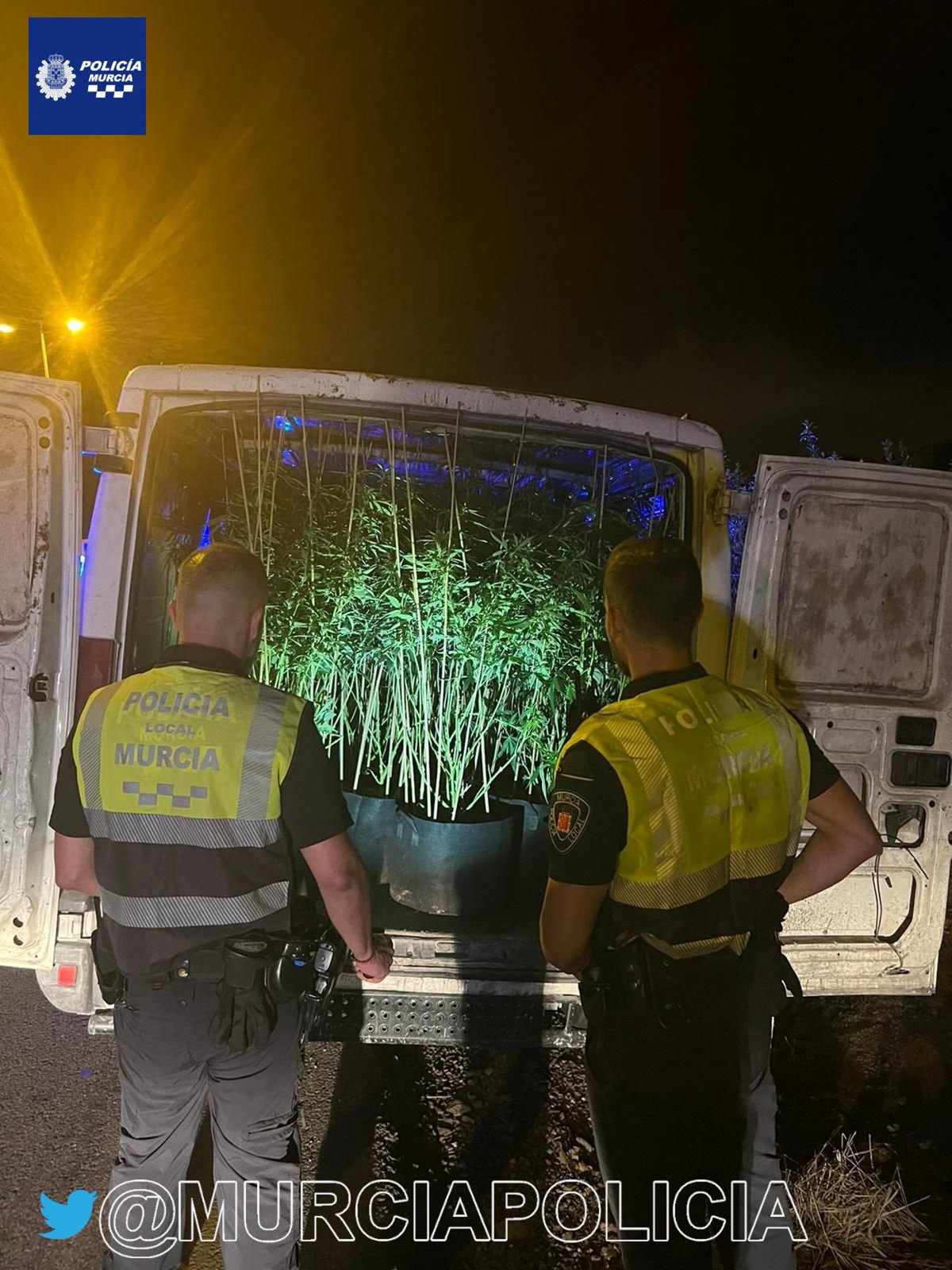 La Policía Local de Murcia ha intervenido en la madrugada de este lunes una furgoneta con 23 plantas de marihuana en su interior, según han informado fuentes del Cuerpo en sus redes sociales.