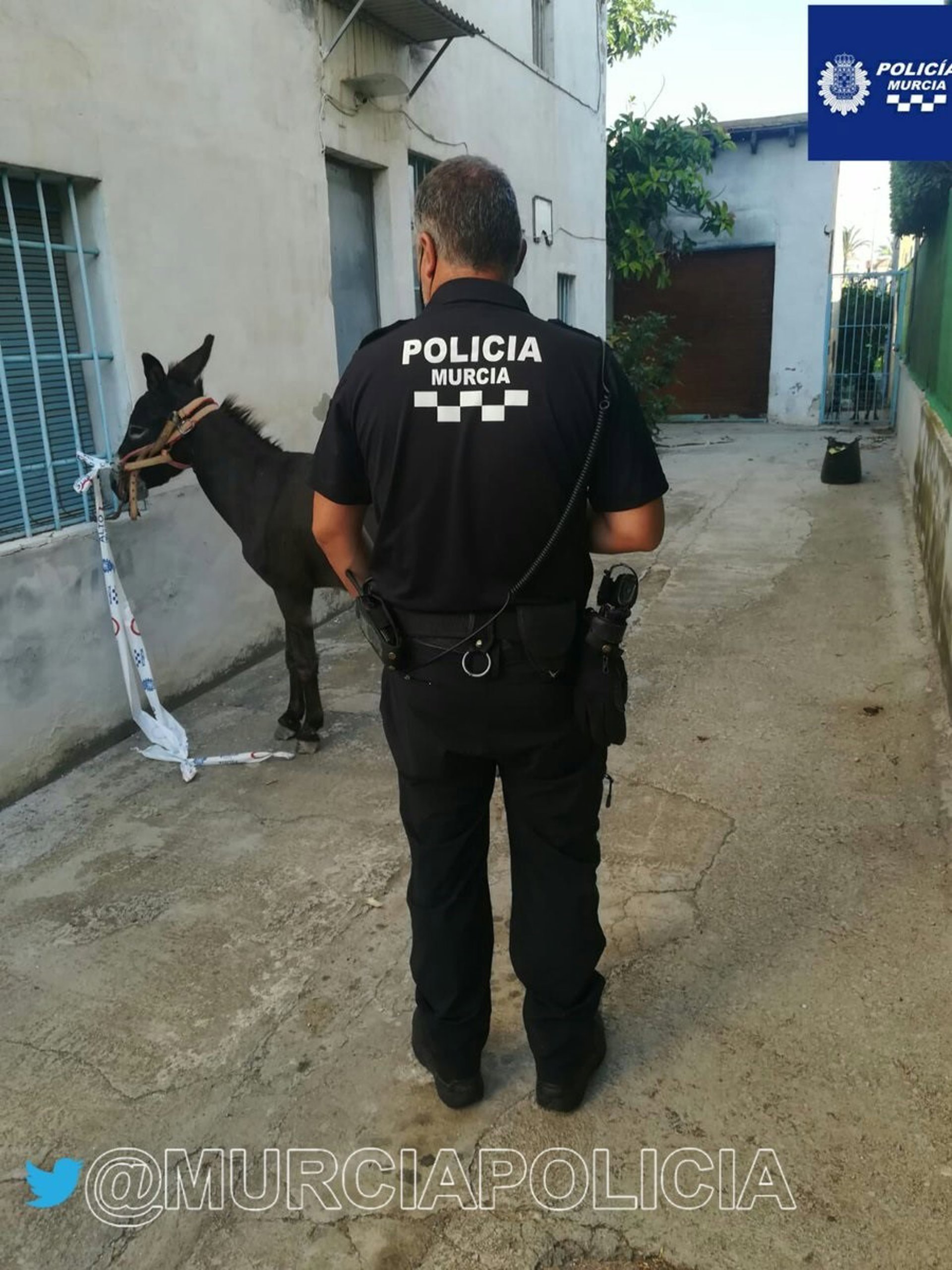 La Policía Local de Murcia localizó este domingo un burro que deambulaba por la calzada, en la calle Huerto Alix, con riesgo de ser atropellado.