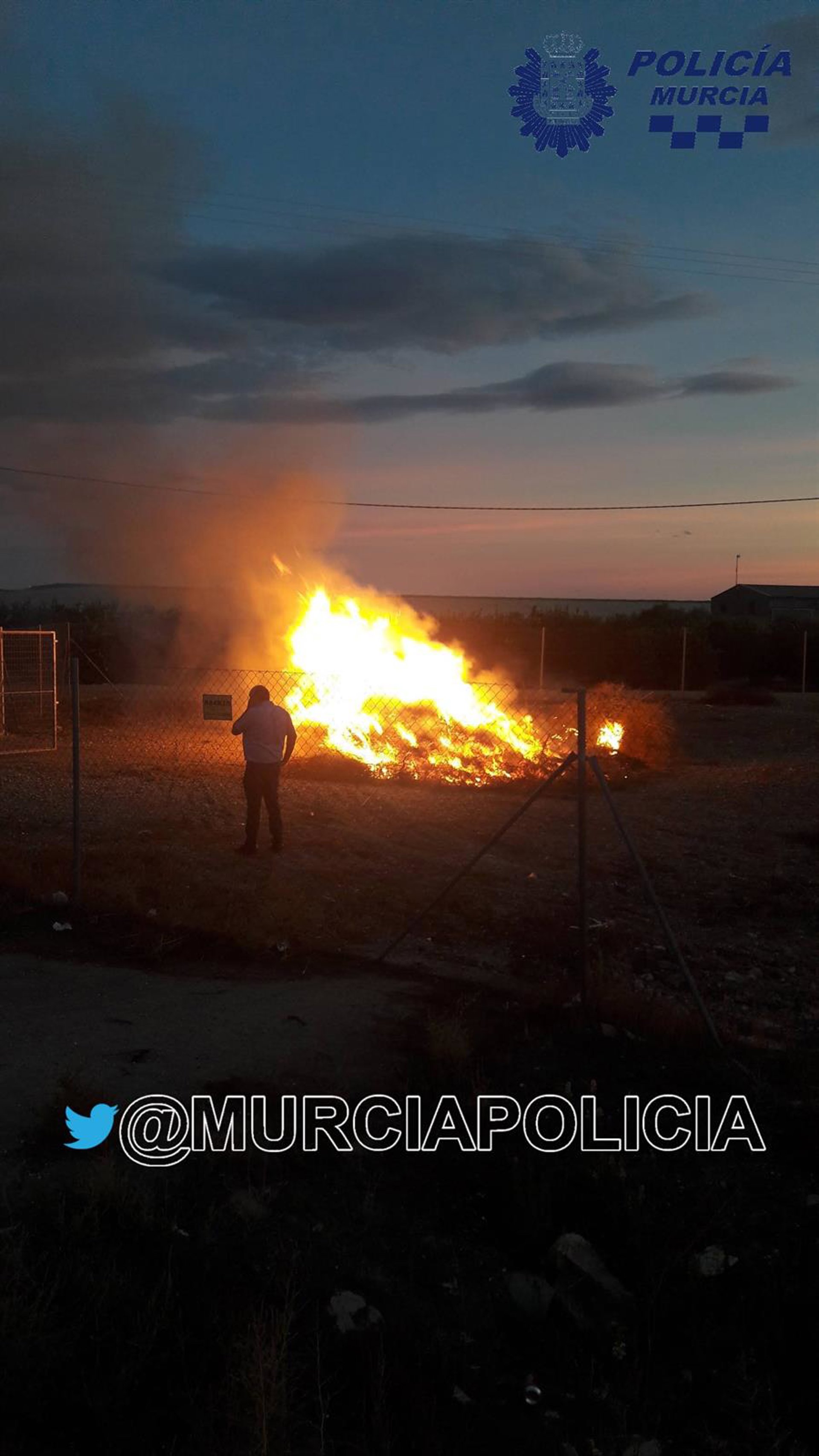 Imagen de la quema de rastrojos - POLICÍA LOCAL DE MURCIA