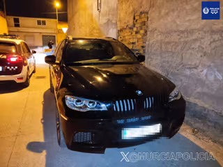 La Policía Local de Murcia ha recuperado un coche BMW X6 que figuraba como sustraído, que tenía las placas dobladas y con indicios de posible uso en hechos delictivos.
