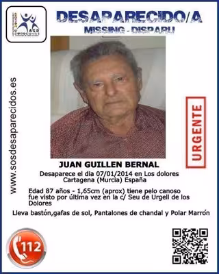El anciano, con movilidad reducida, mide 1,65 metros de altura, tiene el pelo canoso y vestía pantalones de chándal, un polar marrón, gafas de sol y llevaba un bastón cuando fue visto por última vez en la calle Seu de Urgell de Los Dolores, según la petición de ayuda que la familia ha publicado en las redes sociales.