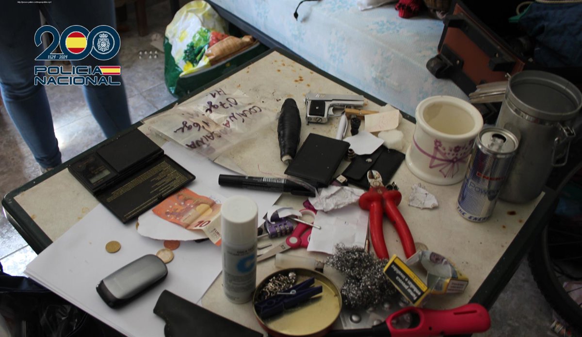 En los diferentes registros, donde los canes de la unidad de guías caninos de la Policía Nacional tuvieron un papel muy relevante, los agentes intervinieron cocaína, marihuana, balanzas de precisión, dinero en efectivo, un revolver, dos vehículos y diversas joyas que no se descarta que hayan sido entregadas como pago a cambio de drogas por los consumidores.