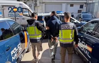 El detenido, custodiado por dos agentes de la Policía Nacional - POLICÍA NACIONAL
