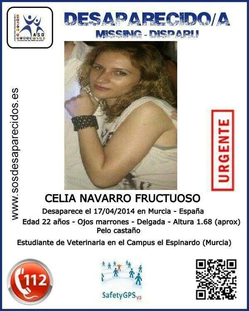 Según la información disponible en la web 'www.sosdesaparecidos.es', de la que se ha hecho eco la Guardia Civil, la joven tiene 22 años, ojos marrones, es delgada, tiene el pelo castaño y una altura de 1,68 metros aproximadamente. Además, es estudiante de Veterinaria en la Universidad de Murcia.