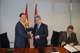 El consejero de Política Social, Mujer e Inmigración, Joaquín Bascuñana, y el presidente de Caja Mediterráneo (CAM), Ángel Martínez, a través de su Obra Benéfico-Social, firmaron hoy un convenio de colaboración por el que la entidad financiera se compromete a aportar 6.000 euros para actividades que promocionen el envejecimiento activo de los mayores.