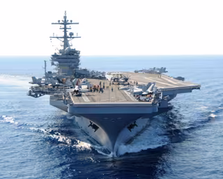 Un total de 6.500 marinos de la U.S. Navy viajan a bordo de esta ciudad flotante que transporta 73 cazas y helicópteros de combate
