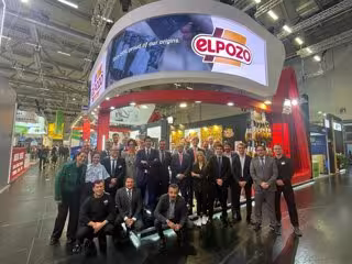 La imagen de la compañía preside el hall del recinto ferial de Klnmesse GMBH en Colonia (Alemania) donde se celebra la feria Anuga, hasta el próximo 11 de octubre. Un cartel de más de 100 metros cuadrados del tenista Carlos Alcaraz, embajador de la marca ELPOZO, da la bienvenida a los 7.900 expositores y a las 160.000 personas que visitarán el evento.