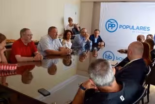 Los candidatos del PP al Congreso, Francisco Bernabé e Isabel Borrego, ha mantenido este viernes una reunión con representantes del sector hotelero de Cartagena y La Manga del Mar Menor, con quienes han tratado sobre las iniciativas en materia turística del Partido Popular, como la próxima llegada de la Alta Velocidad, la apertura del aeropuerto internacional de la Región de Murcia, así como la situación del Mar Menor.
