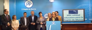 La vicesecretaria de Política Municipal del PP de la Región de Murcia, Maruja Pelegrín, acompañada de la consejera de Educación y Universidades, María Isabel Sánchez-Mora, y su equipo directivo, han hecho este jueves un balance "muy positivo" de la gestión del Gobierno de los 'populares' en el ámbito educativo en los 100 primeros días de gobierno.