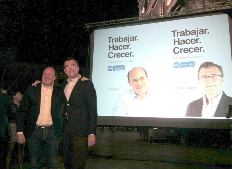 Pedro Antonio Sánchez, que junto al candidato a la Alcaldía de Murcia, José Ballesta, y acompañados de sus antecesores, Ramón Luis Valcárcel y Miguel Ángel Cámara, respectivamente, han protagonizado la tradicional pegada de carteles aunque en esta ocasión en modo digital con el lema 'Trabajar, Hacer, Crecer', espera que los murcianos "sean capaces de tener una decisión con un gobierno fuerte y sólido".