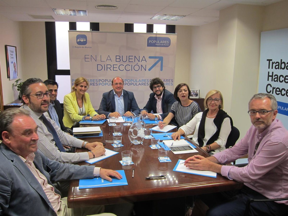 A esta reunión han asistido los vicesecretarios Patricia Fernández (Comunicación y Formación), Fernando López Miras (Organización), Alejandro Zamora (Electoral, Estudios y Programas), Severa González (Sectorial) y Maruja Pelegrín (Política Municipal), así como los portavoces de la Asamblea Regional y coordinadores de los grupos de diputados y senadores, entre otros.