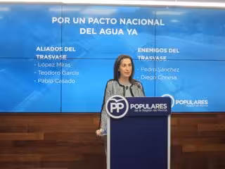 La portavoz del Partido Popular de la Región de Murcia, Nuria Fuentes, ha afirmado que "el trasvase Tajo-Segura tiene tres grandes aliados en los presidentes nacional y regional del PP, Pablo Casado y Fernando López Miras, así como en Teodoro García, secretario general del partido". Por contra, ha señalado que esta infraestructura "también cuenta con dos grandes enemigos, Pedro Sánchez, que en varias ocasiones se ha pronunciado a favor de poner fin al acueducto y su secretario general en Murcia, Diego Conesa".
