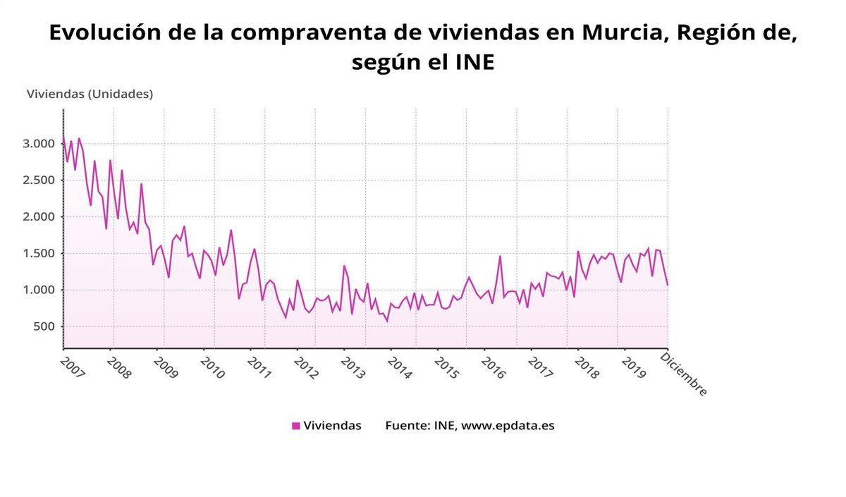 El precio medio de la vivienda libre subió en la Región de Murcia un 4,6 por ciento en el cuarto trimestre de 2019 en tasa interanual, según el Índice de Precios de Vivienda (IPV) del Instituto Nacional de Estadística (INE) publicado este martes.