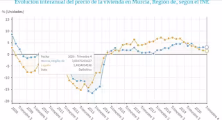 Evolución interanual del precio de la vivienda en la Región de Murcia - EPDATA