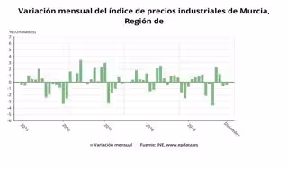El Índice de Precios Industriales (IPRI) en la Región de Murcia ha descendido un 1,2 por ciento en diciembre en relación al mismo mes del año anterior, según ha informado este viernes el Instituto Nacional de Estadística (INE).