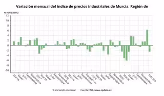 El Índice de Precios Industriales (IPRI) en la Región de Murcia ha aumentado un 0,3 por ciento en febrero en relación al mismo mes del año anterior, según ha informado este jueves el Instituto Nacional de Estadística (INE).