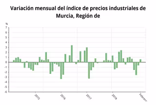 Los precios industriales aumentaron un 0,6 por ciento el pasado mes de febrero en la Región de Murcia respecto al mes anterior, frente al aumento del 0,2 por ciento de la media del conjunto nacional, según el Índice General de Precios Industriales publicado este lunes por el Instituto Nacional de Estadística (INE).
