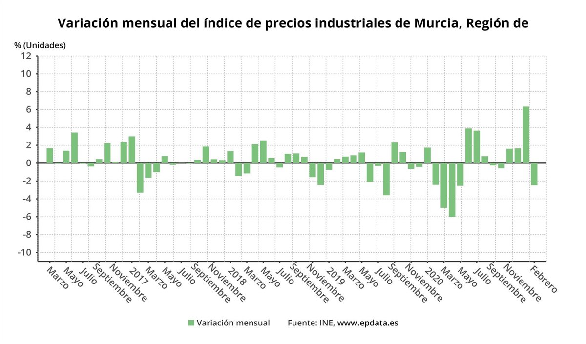Variación mensual del índice de precios industriales de Murcia - EUROPA PRESS